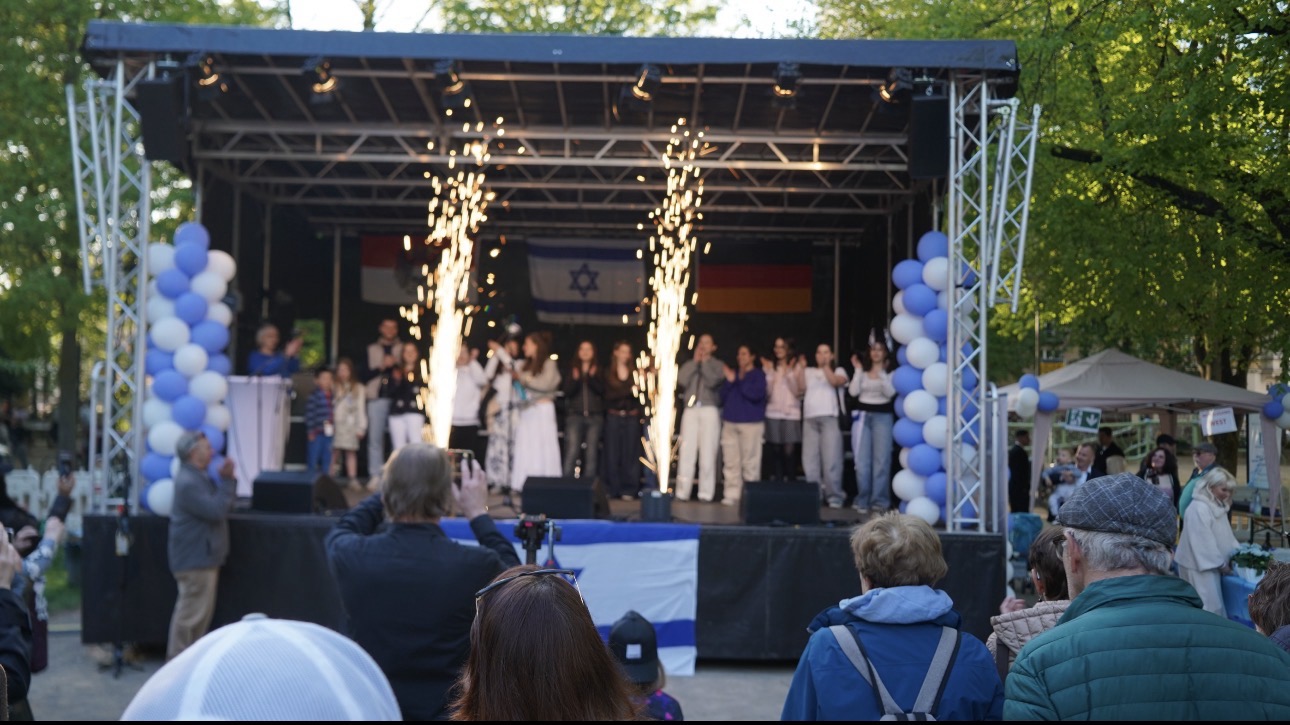 Die strahlende Sonne sorgte dafür, dass das blau-weiße Fahnenmeer am Rathenauplatz gegenüber der Synagoge noch heller erstrahlte! Tolle Show-Acts, gutes Essen und mehr Besucher als die letzten Jahre rundeten das schöne Fest ab!